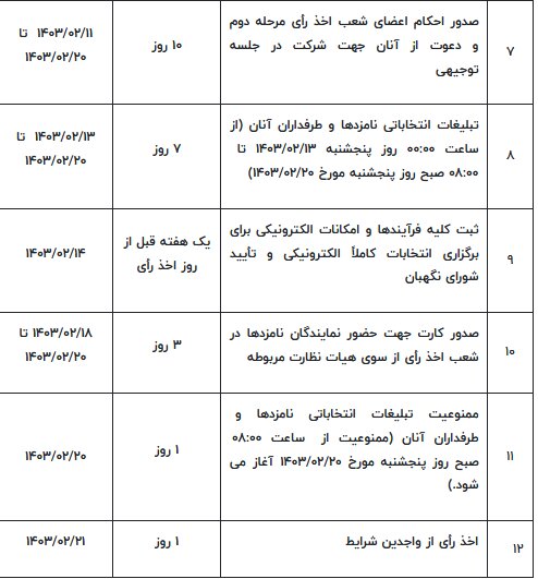 کلیات برنامه زمانبندی مرحله دوم انتخابات دوازدهمین دوره را اینجا بخوانید .
